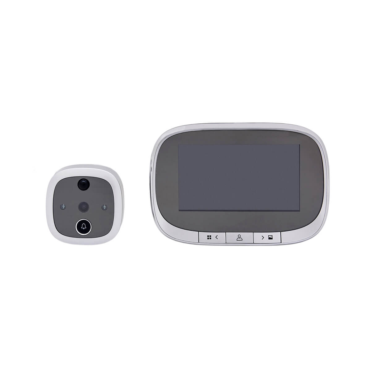 Видеоглазок SF-550A (серебристый) - это электронное устройство с помощью которого проводят организацию контроля доступа в частные дома, квартиры или служебные помещения. Предназначен для установки в дверные полотна имеющих толщину 32 … 100 мм. Монтаж видеоглазка осуществляется на внешнюю и внутреннюю поверхность дверей. С внешней стороны монтируется видеокамера небольших размеров и кнопка для вызова, с внутренней стороны –монитор с размером экрана 4,3 дюймов. Камера имеет угол зрения 120 градусов. Это практически исключает возникновению слепых зон. Для нормального функционирования в ночное время установлены инфракрасные светодиоды. Также установлен датчик движения, который срабатывает при приближении человека на расстояние 1,5 метра к видеоглазку.